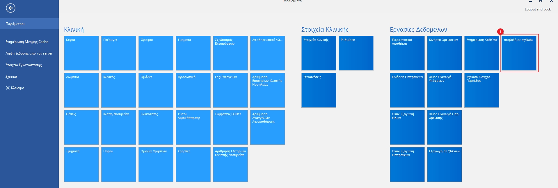 Από το μενού Παραμετροποίησης κάνουμε κλικ στο κουμπί Υποβολή σε myData(1).