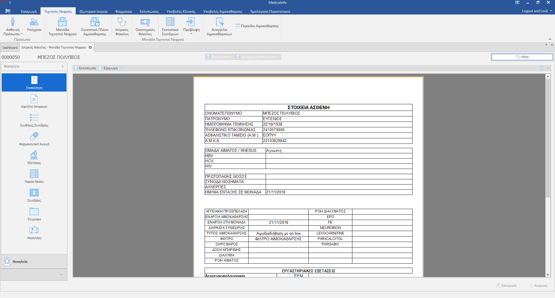Επισκόπηση: Όπου παρουσιάζόνται τα στοιχεία που έχουμε καταχωρήσει εντός του Ιατρικού Φακέλου.
