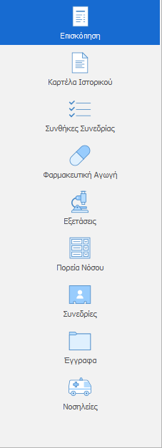 Οι επιλογές εντός του Ιατρικού Φακέλου είναι οι παρακάτω: