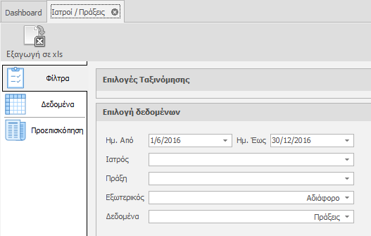 Μενού Εκτυπώσεις -> Ιατροί ανά Πράξη
