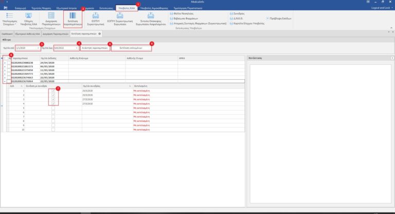 Από τα φίλτρα επιλέγουμε το διάστημα από(3) και έως(4) για το οποίο επιθυμούμε να εκτελέσουμε παραπεμπτικά και κάνουμε κλικ στο κουμπί Ανάκτηση παραπεμπτικών(5).