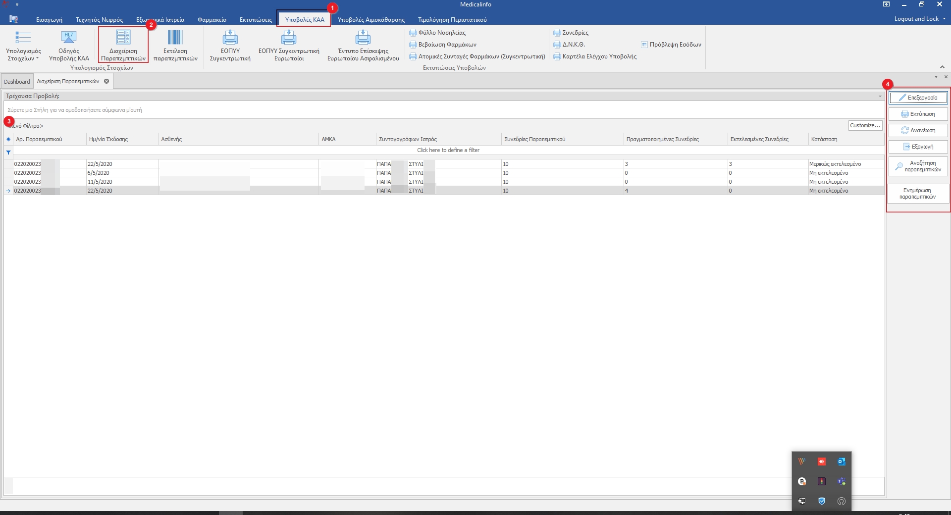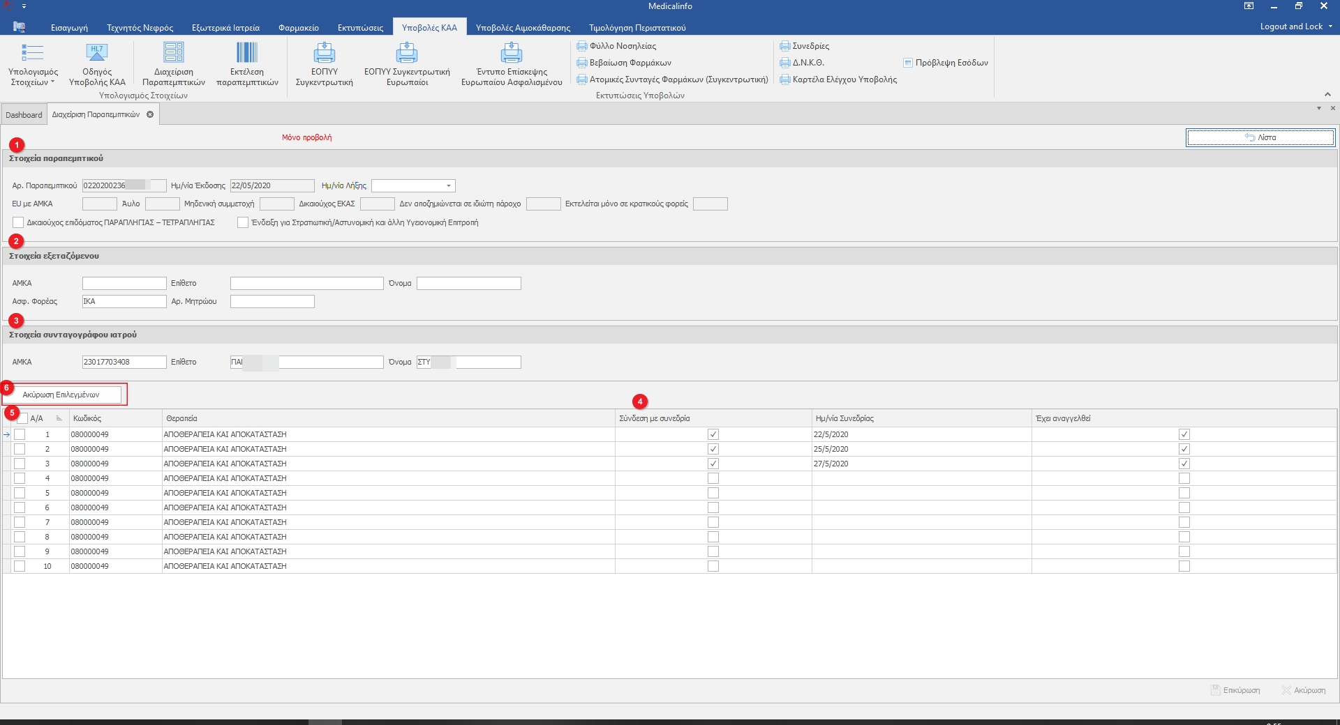 Εμφανίζονται όλα τα στοιχεία των συνεδριών(4) του παραπεμπτικού.