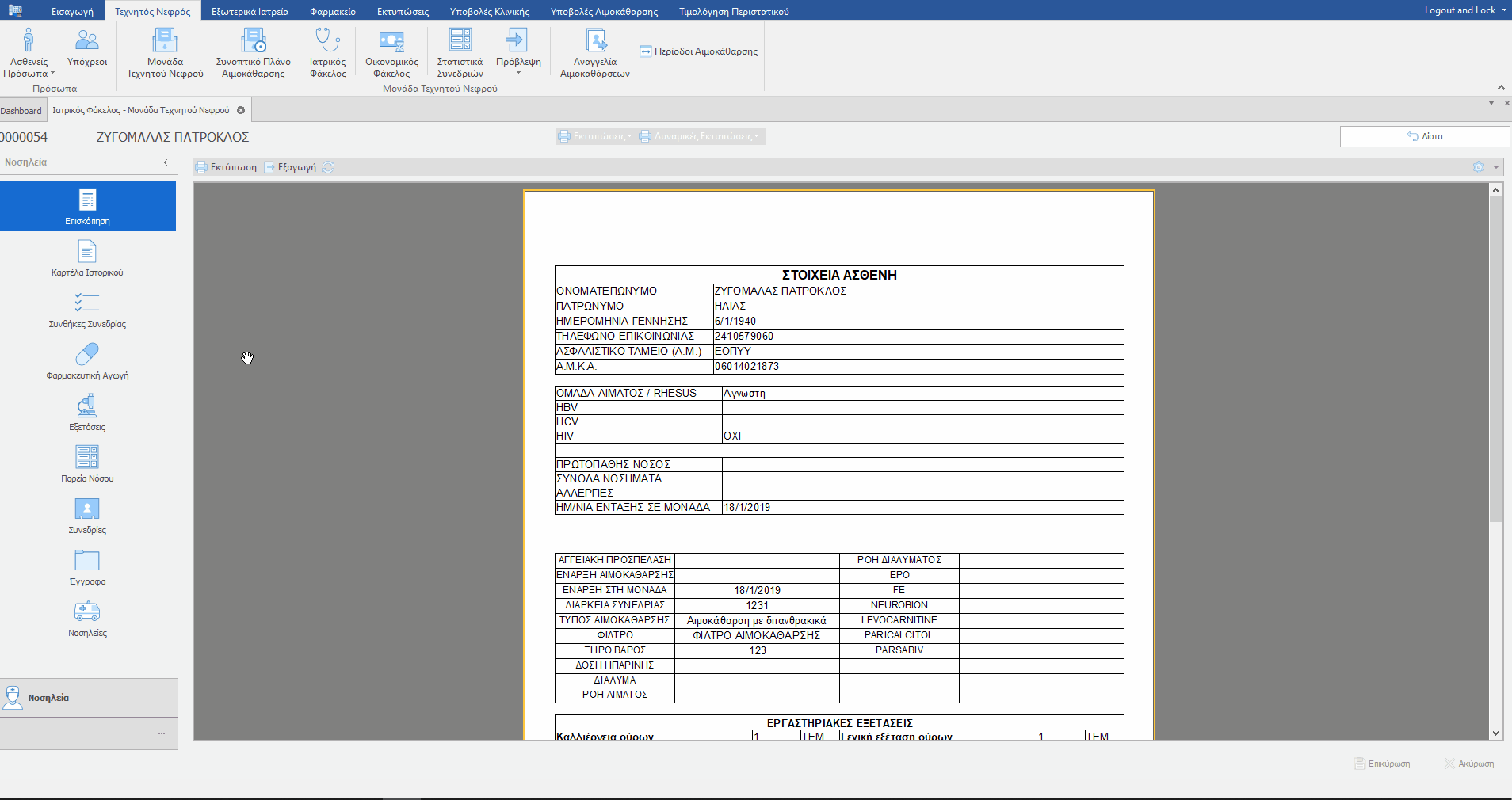 Αν επιθυμούμε να εκτυπώσουμε την αναφορά Πορεία Νόσου για τον ασθενή κάνουμε κλικ στο εικονίδιο του εκτυπωτή.