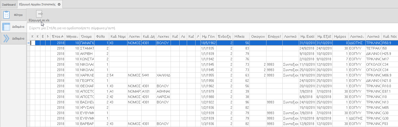Κάνουμε κλικ στο κουμπί Εξαγωγή σε xls.