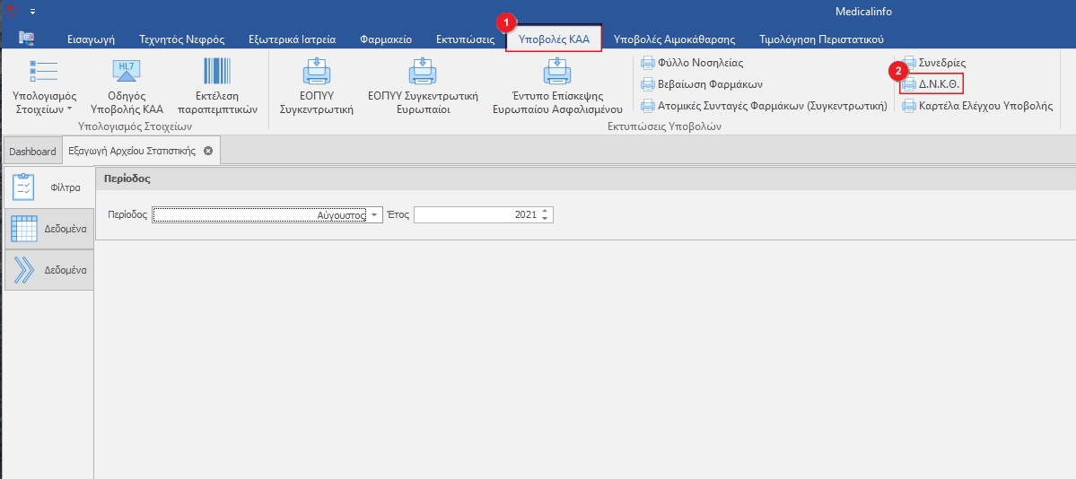 Υποβολές ΚΑΑ(1) και επιλέγουμε την καρτέλα Δ.Ν.Κ.Θ.(2).