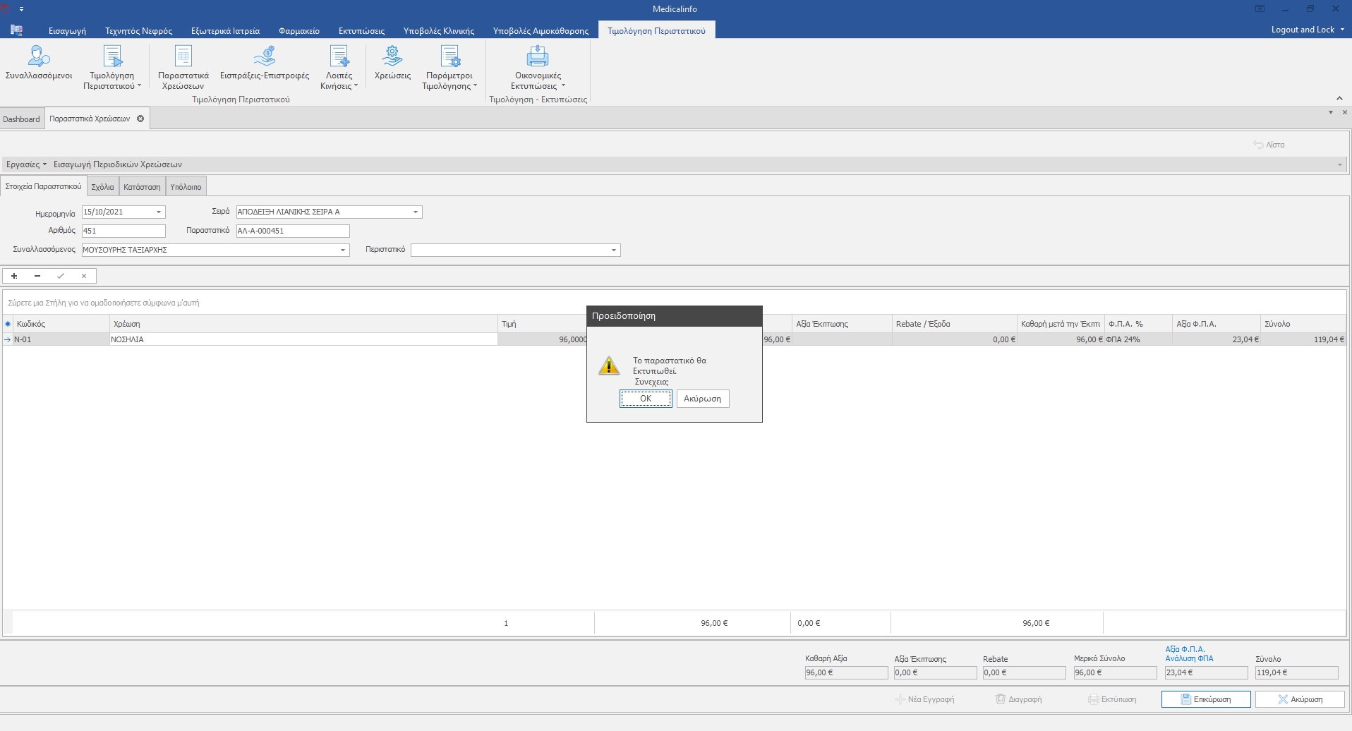 Όταν ολοκληρώσουμε επικυρώνουμε και προχωράμε στην εκτύπωση του παραστατικού.