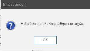 Μετά την ολοκλήρωση της διαδικασίας εμφανίζεται μήνυμα επιβεβαίωσης στο οποίο κάνουμε κλικ ΟΚ για να προχωρήσουμε.