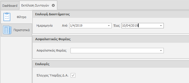 Σημείωση! Τα διαστήματα εκτέλεσης είναι καθαρά στην κρίση της κλινικής. Απαραίτητη προϋπόθεση είναι να έχουν οριστικοποιηθεί οι αλλαγές στις συνταγές των ασθενών. Επίσης θα πρέπει να προσέχει ο χρήστης - φαρμακοποιός τα διαστήματα εκτέλεσης. Αν είναι επιλεγμένη η επιλογή "Έλεγχος ύπαρξης Δ.Α (Δελτίου Ανάλωσης)", για όποιο ασθενή ο μηχανισμός βρει δελτίο ανάλωσης στο επιλεγμένο διάστημα, προσπερνά τον ασθενή και δεν εκτελεί καμία μέρα. Αν για παράδειγμα επιλέξουμε το διάστημα από 15/2/2019 έως 21/2/2019 και ο ασθενής έχει δελτίο ανάλωσης στις 17/2/2019, ο μηχανισμός θα προσπεράσει τον ασθενή και δεν θα εκτελέσει τις συνταγές του για όλο το διάστημα. Αυτό μπορεί να αποφευχθεί με την τυποποίηση των διαστημάτων εκτέλεσης, πχ κάθε δευτέρα για όλη την προηγούμενη εβδομάδα, ή με το ξε-τσεκάρισμα του Ελέγχου ύπαρξης. Σε καμία περίπτωση, δεν δημιουργούνται πάνω από μια εγγραφές ανά σκεύασμα ανά ημέρα.