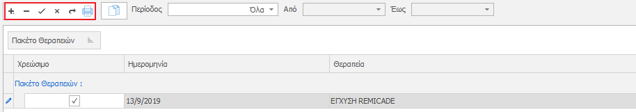 - Πλήκτρα προσθήκης/αφαίρεσης θεραπειών (εφόσον έχουμε επιλέξει τη θεραπεία ή το πακέτο).