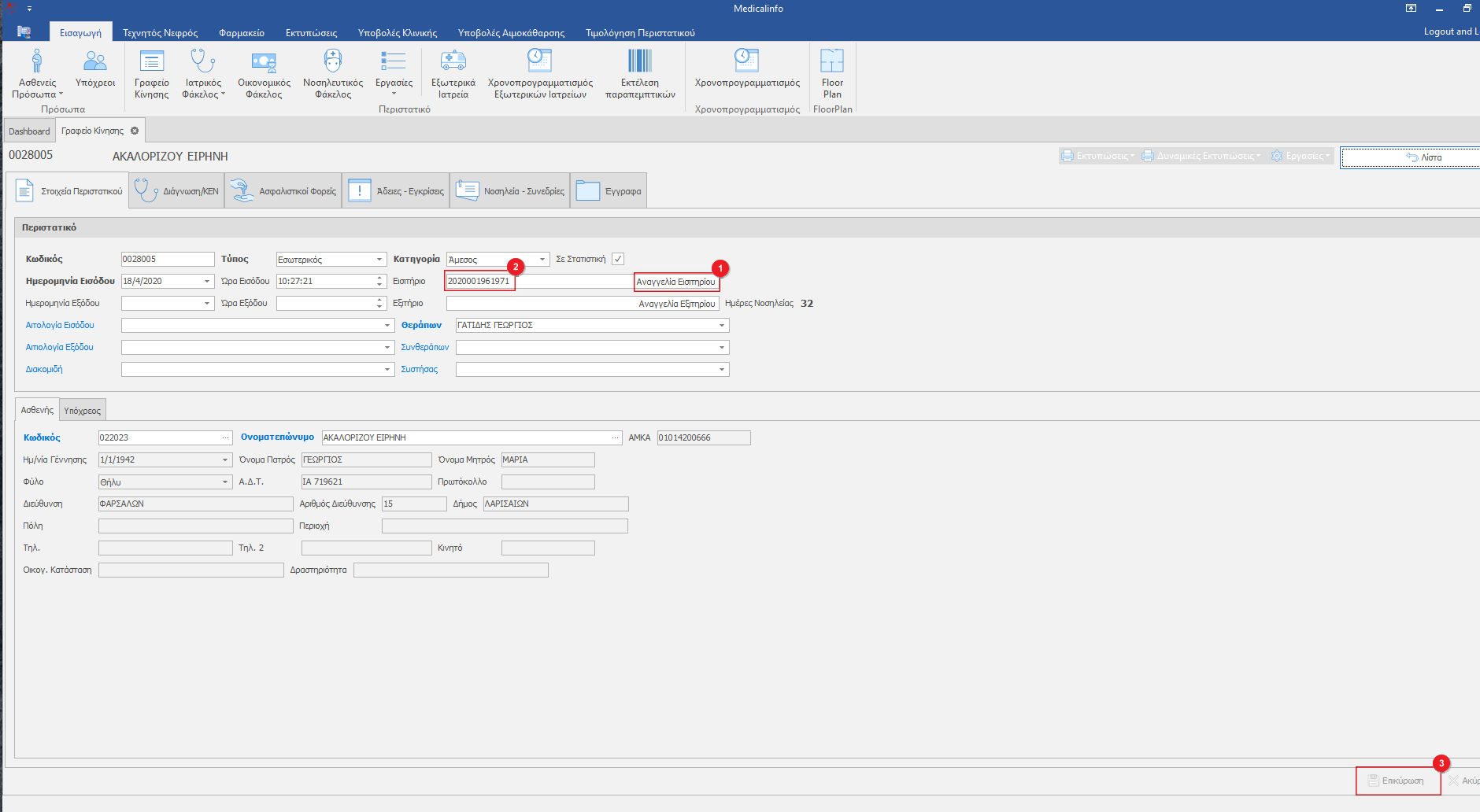 Με την ολοκλήρωση της παραπάνω διαδικασίας ο ΕΟΠΥΥ έχει ενημερωθεί για την είσοδο του ασθενή.